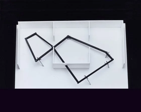 Spirals, arcs and supporting beams herald a constructive shift in Gitlin’s syntax in the 80s. His works become more open and trace a movement between potential building and actual collapse, this unsteadiness only increasing their dynamism in the space. The work Broken Infinity, designed as a model in 1986 and executed in a slightly different form in Kunstverein Bonn in 1988, is a natural consequence of this move. The work, which extended across three rooms and further expanded from them into the space, is shown at the current exhibition.